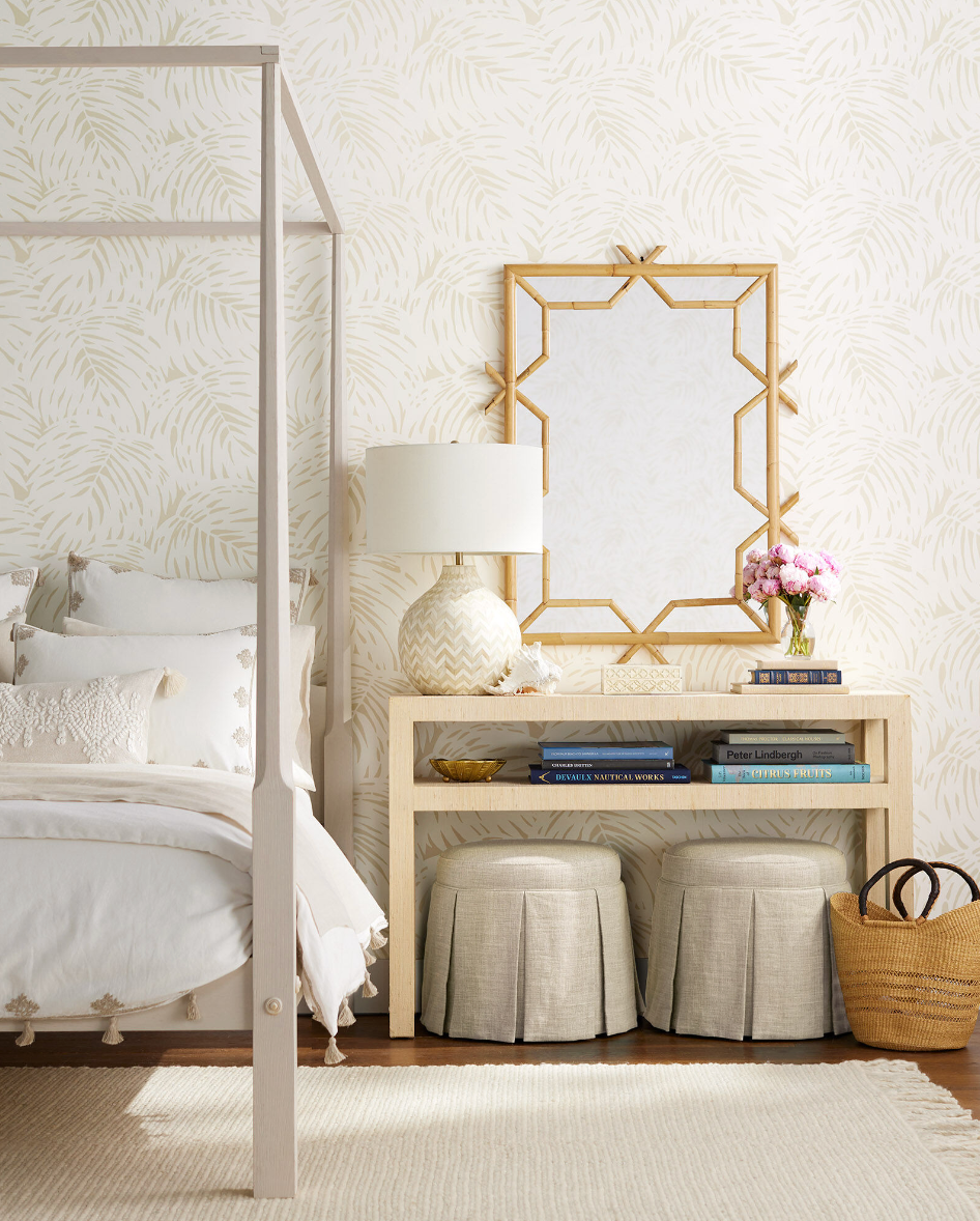 A shining example of style: the elevated look of bone inlay meets the glow of a lamp. We love the texture and the timeless artistry this brings – such a great way to have fun with a neutral. The intricate inlaid bone, the classic chevron pattern, the soft shape, the linen shade. It’s a work of art all its own. (You’ll wonder how you did without!)