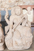 A beautifully hand-carved Goddess Saraswati sculpture made from natural pink stone. The goddess is shown holding a veena, symbolizing wisdom, art, and knowledge. Perfect for adding a serene and spiritual presence to your home, garden, or temple space.