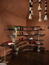 A sculptural exploration of balance and form, the Vessel shelf system brings together natural stone and wood in an architectural dialogue. Its flowing, tiered planes in Silver Travertine sourced from Italy create a sense of movement while grounding the design in timeless materiality.